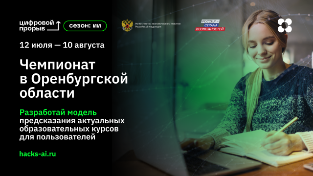 Образовательная компания «Нетология» предоставила кейс для чемпионата. Участники смогут разработать модель, предсказывающую наиболее подходящий клиенту курс на базе данных фирмы. Персонализация контента — тренд, который будет сохраняться в любых индустриях, связанных со сферами образования, финансов и даже медицины — там, где запрос пользователя и его «персональный путь» ставится на первое место в принятии решений даже о внедрении в образовательный процесс искусственного интеллекта. Компания готова модернизировать систему продвижения продуктов, которая сегодня осуществляется без применения моделей машинного обучения. «Региональные чемпионаты проекта «Цифровой прорыв. Сезон: искусственный интеллект» ставят перед участниками уникальные и актуальные задачи, и чемпионат в Оренбургской области не является исключением. На протяжении месяца участники будут создавать модель машинного обучения для российской образовательной компании, и наша цель – популяризировать профессии и технологии в области образования и дать возможность специалистам разного уровня проявить себя в индивидуальном соревновании. Уникальный объем данных из образовательной отрасли для решения задачи позволит участникам создать неординарные рабочие решения, лучшие из которых будут внедрены», – прокомментировал Алексей Агафонов, первый заместитель генерального директора АНО «Россия – страна возможностей».