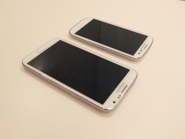 А вот Samsung Galaxy Note 2 (на переднем плане) вместе со своим двоюродным братом — Galaxy S III. Они будто парят в пространстве, так же грациозно, как птички из Angry Birds.