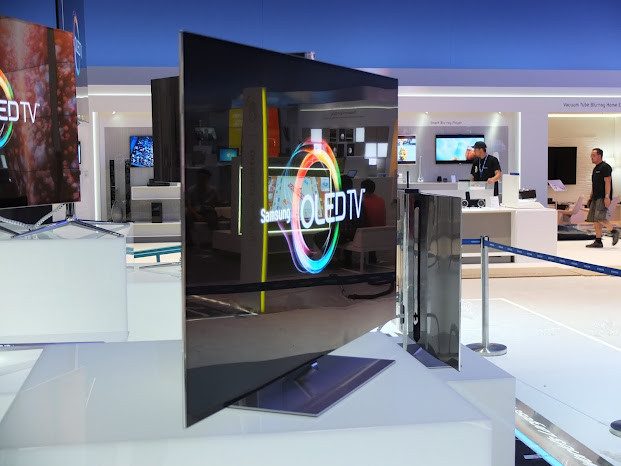 А это очередной суперсовременный телевизор Samsung с OLED-экраном. Здесь все как обычно: технологии передовые, ценник для олигархов и мегаяркие цвета. Выглядит все это красиво, но глаза от такой яркости устают довольно быстро.