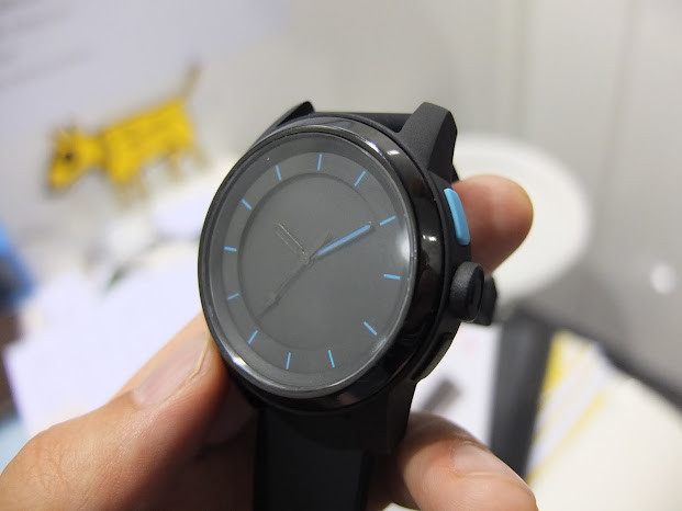 Стрелочные часики, которые подключаются к смартфону по Bluetooth и могут синхронизироваться с Facebook, для чего предусмотрена синяя кнопочка.