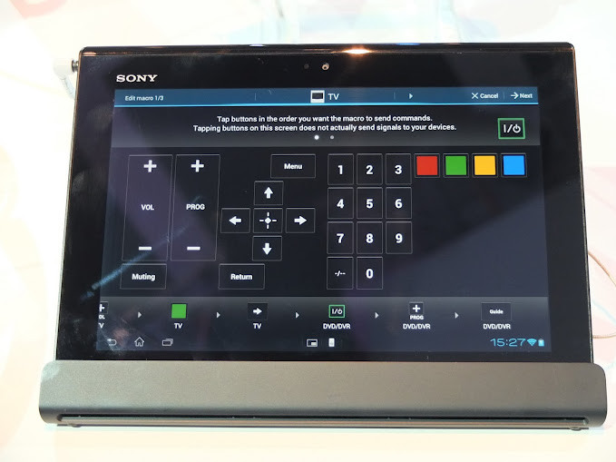 Ну а это планшет Sony Xperia Tablet S с приложением, позволяющим ему выступать в качестве пульта управления для бытовой техники. Кстати, это модный тренд: соответствующий софт для своих смартфонов и «таблеток» пишут сегодня очень многие компании.