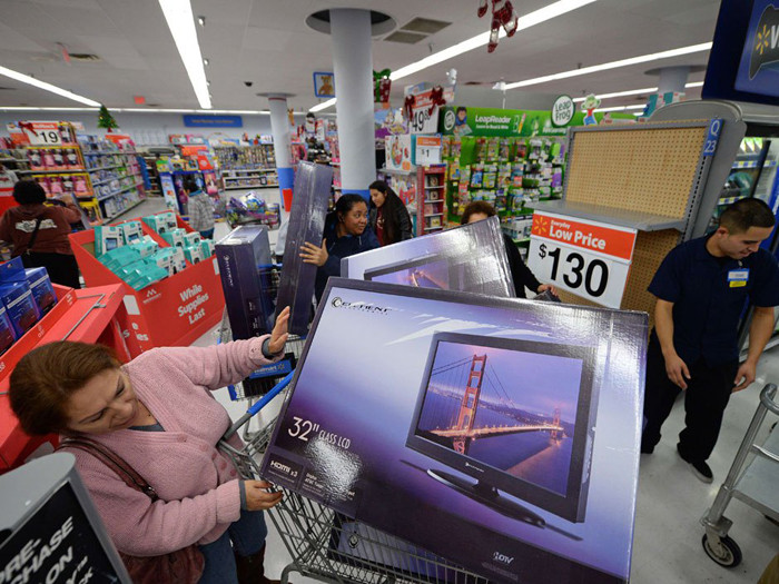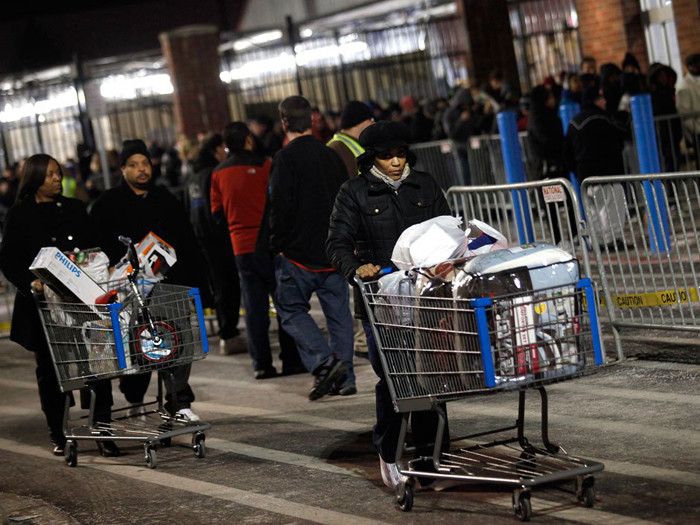Для продавцов и служащих крупнейших дискаунтеров и супермаркетов Walmart, Target, Sears и Kmart «Чёрная Пятница» – настоящий ад. Целый день их осаждают клиенты, которые мечтают заполучить лучшие предложения. День и ночь в магазинах царит вакханалия и давка – атмосфера накалена до предела. Мелких потасовок и перепалок не счесть, но в 2013-м был поставлен антирекорд по происшествиям. Один из магазинов Walmart был эвакуирован и закрыт на 3 часа после ложного сообщения о заложенной там бомбе. В Иллинойсе магазинный вор был задержан полицией, но оказал сопротивление, вытащил полицейского из машины, после чего стражам правопорядка пришлось стрелять. В Лас-Вегасе счастливого обладателя нового телевизора подстрелили и ограбили возле дома. В городе Риальто (Калифорния) в ходе драки в магазине пострадал полицейский, разнимавший любителей распродаж. Возле Walmart в Вирджинии два покупателя не поделили место на стоянке, и один полоснул обидчика ножом. В Карлсбаде (Калифорния) один покупатель ударил другого ножом в живот при выходе из магазина. Судя по всему, за то, что входящий не уступил дорогу. Впрочем, Walmart утверждает, что по сравнению в прошлым годом количество происшествий у них значительно сократилось, при том что клиентов прибавилось. За пятницу покупки совершили 22 млн человек. Что интересно, 10 млн покупок было сделано именно вечером пятницы, с 6 до 10 вечера. Для поднятия продаж в Walmart запустили распродажи, снизив свои онлайновые цены до уровня самых низких цен в Amazon.com. Так, iPad предпоследнего поколения стоил в Walmart 399 долларов. За 24 часа было сеть продала 2,8 млн полотенец, 2 млн телевизоров, 300 тысяч велосипедов и почти 2 млн детских кукол.