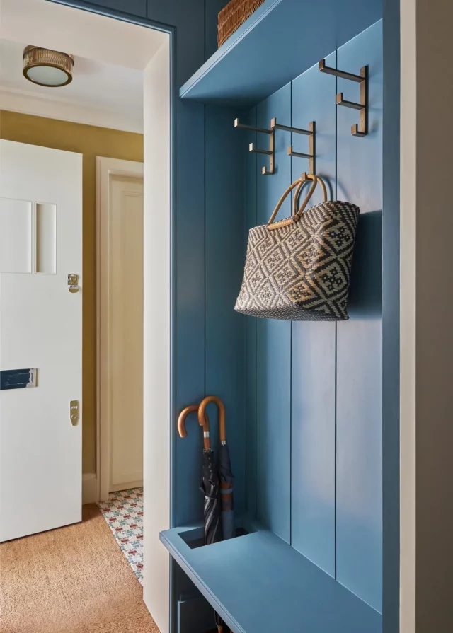 В этой квартире на юге Лондона, спроектированной Карлосом Гарсией, из-за компактного входа Карлос решил использовать узоры и цвета, чтобы оживить пространство сразу за входной дверью. «Комнаты должны быть удобными и расслабляющими, но хранение вещей никогда не выходит у вас из головы», — сказал Карлос House & Garden о проектировании небольшого жилья — в данном случае площадью менее 50 квадратных метров.