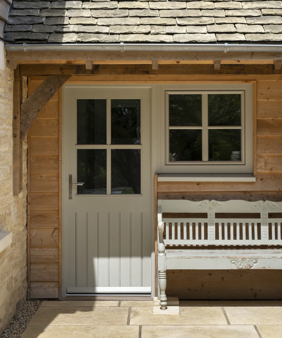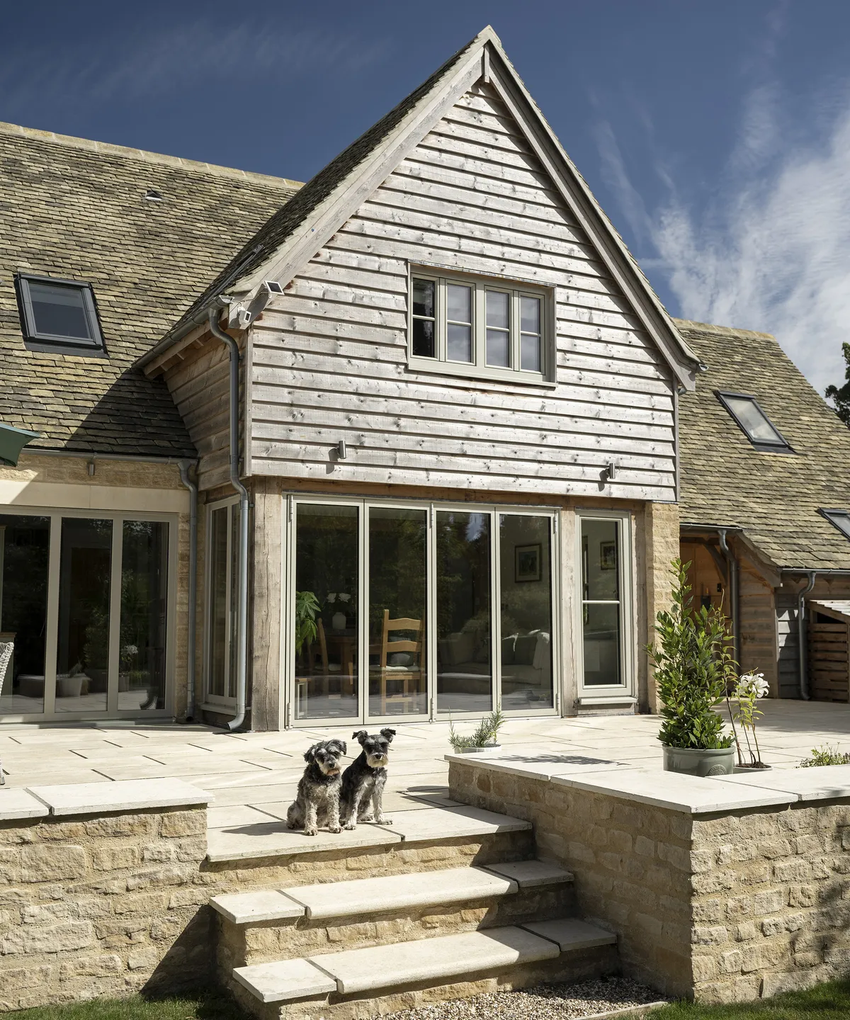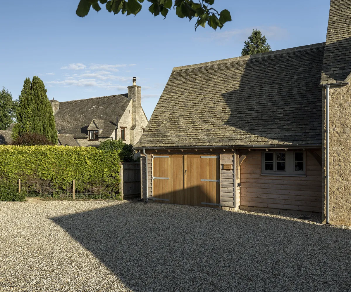 Благодаря мягкой палитре золотистого котсуолдского камня, обшивке из натурального дерева и окнам с тройным остеклением, окрашенным в нежно-зелёный цвет, дом выглядит очень красиво.