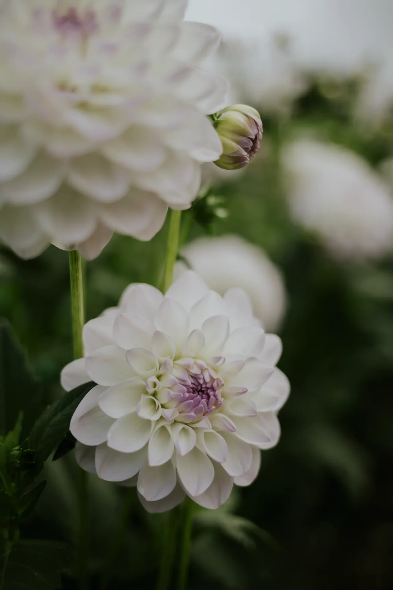 - Декоративный «Eveline»: «Этот сорт имеет белые цветы с легким сиреневым оттенком в середине и по краям лепестков. Это один из моих лучших цветов для свадебных букетов».