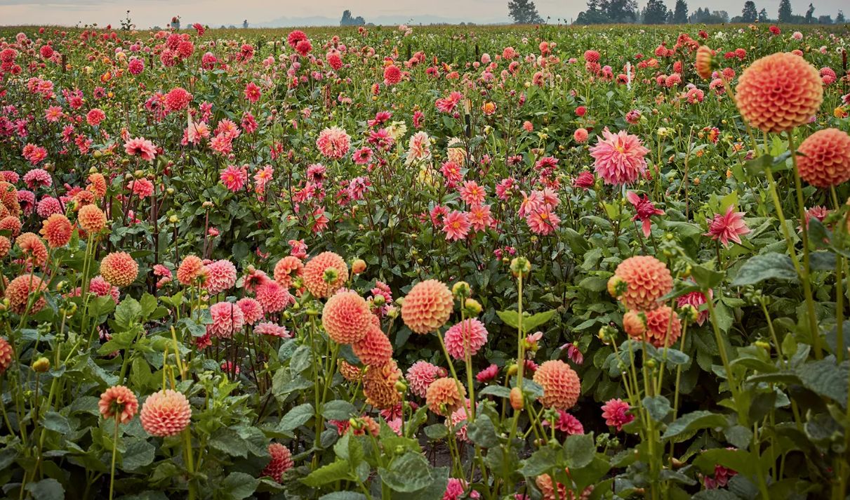 Из всех сортов георгинов Эрин предпочитает «Фернклифф Долли» с нежно-розовыми лепестками и контрастной жёлтой оборкой, «Эпплблоссом» с самыми светлыми кремово-абрикосовыми лепестками и «Эйприл Хизер» с бледно-жёлтыми лепестками с абрикосовым оттенком. В своей книге «Открывая для себя георгины» Эрин также упоминает полукактус «Генриетта» с нежными лососевыми цветками, персиково-оранжевый сорт «Пэм Хауден» — самый совершенный сорт георгинов с цветками, похожими на водяные лилии, — и невероятно популярный сорт «Кофе с молоком», который чаще всего заказывают на её ферме.