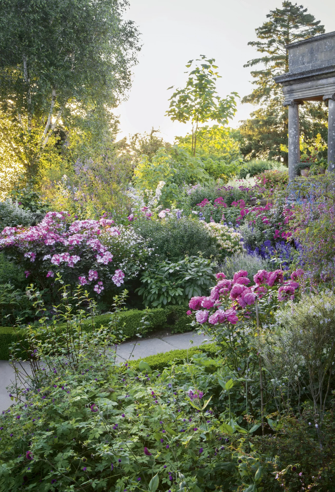 Джулиан и Изабель Баннерман известны своим романтическим подходом к садоводству, и их собственный сад в поместье Ашингтон в Сомерсете полон очаровательных уголков. Сотни роз вплетены в структуру сада, особенно в розарии, где их выращивают на арках и клумбах. Здесь белый R. «Гирлянда» и розовый R. «Многолетняя голубая» на арке у входа в розарий соседствуют с бледно-розовым R. «Пантен-Латур» и пурпурным R. «Тур де Малакофф».