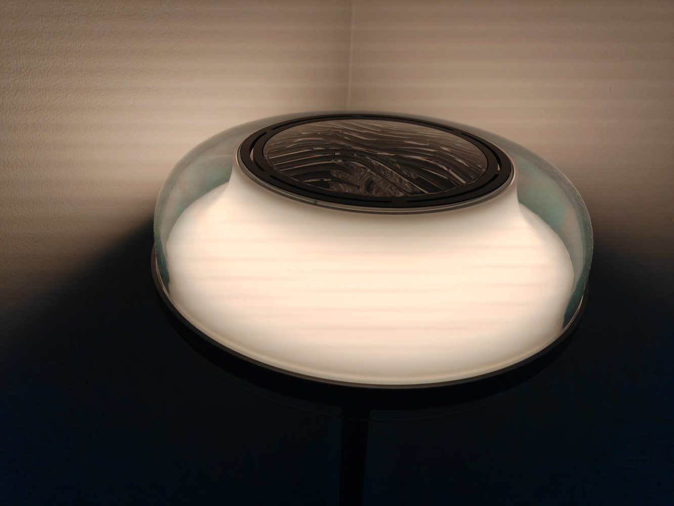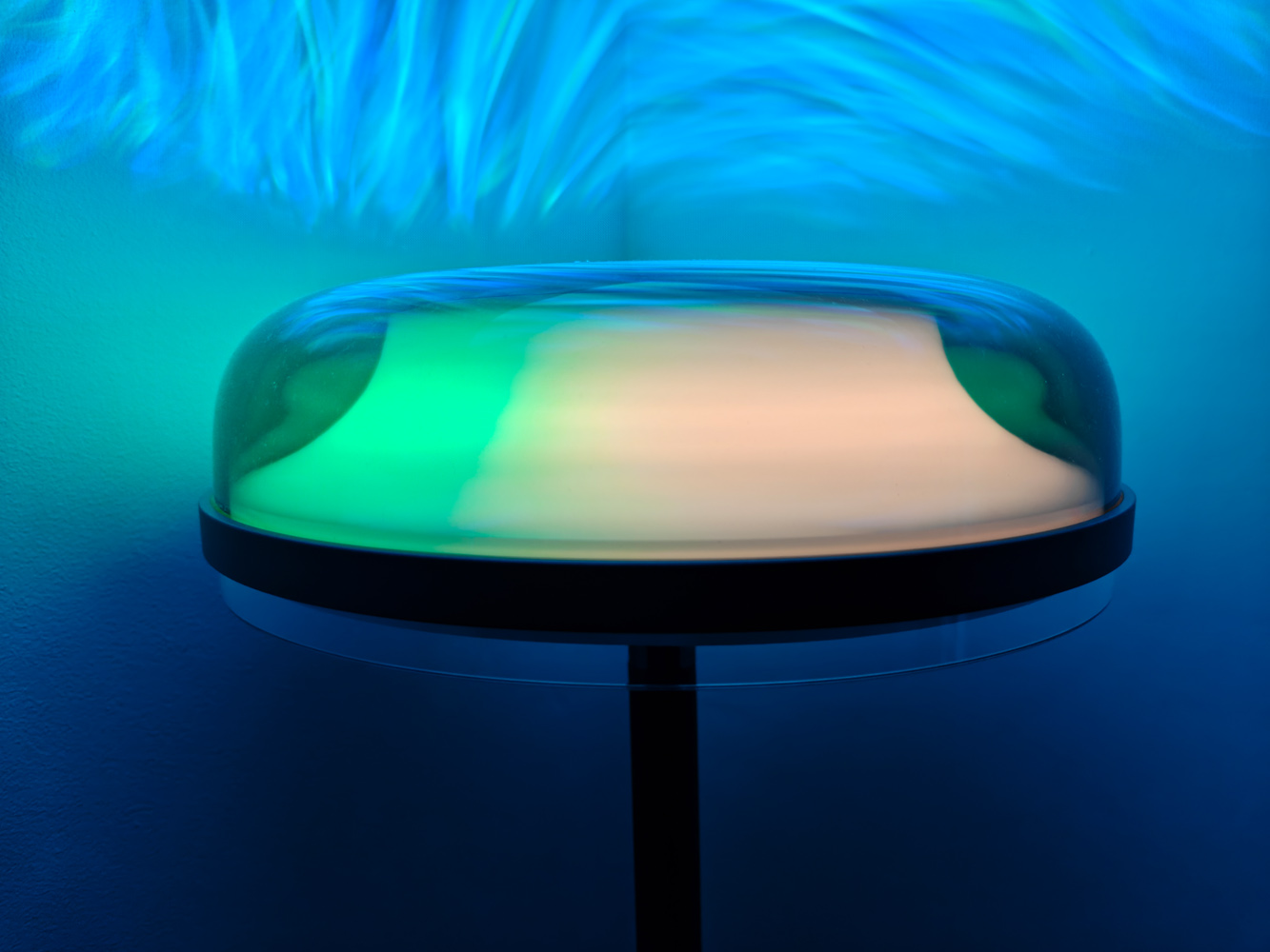 Средняя секция может быть такой же, как нижняя, для более мягкого рассеивания света, отражающегося от стен. Или же вы можете сделать её полностью радужной, так как светодиоды за матовым стеклом поддерживают полную RGB-подсветку.
