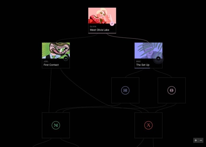 Приложения также содержат то, что Содерберг назвал «открытиями»: полицейские отчеты голосовые сообщения и электронные письма, которые персонажи отправляют друг другу, подборки материалов. Можно будет также посмотреть флэшбэк или флэшфорвард.