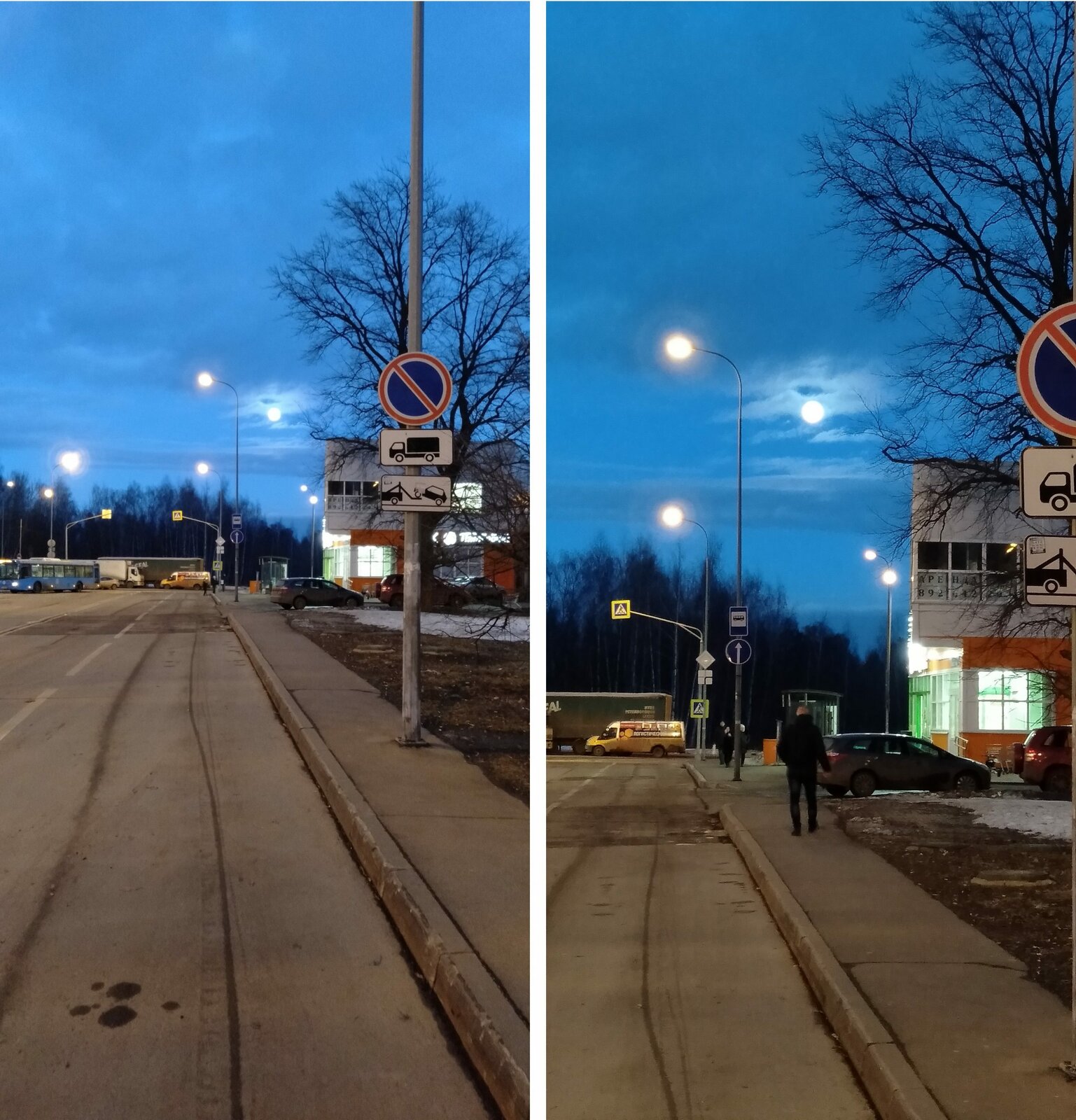 Фото вечером на улице с двукратным оптическим увеличением. «Шумы» для телефона даже очень небольшие.