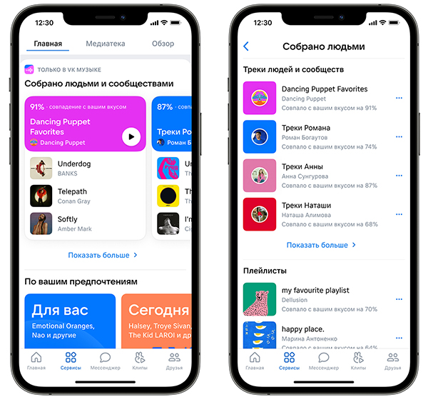 Сейчас в базе «VK Музыки» более 100 млн плейлистов, которые собраны людьми и сообществами. В ближайшее время сервис запустит алгоритм, который покажет музыкальную совместимость и подберет плейлисты на основе совпадения вкусов.