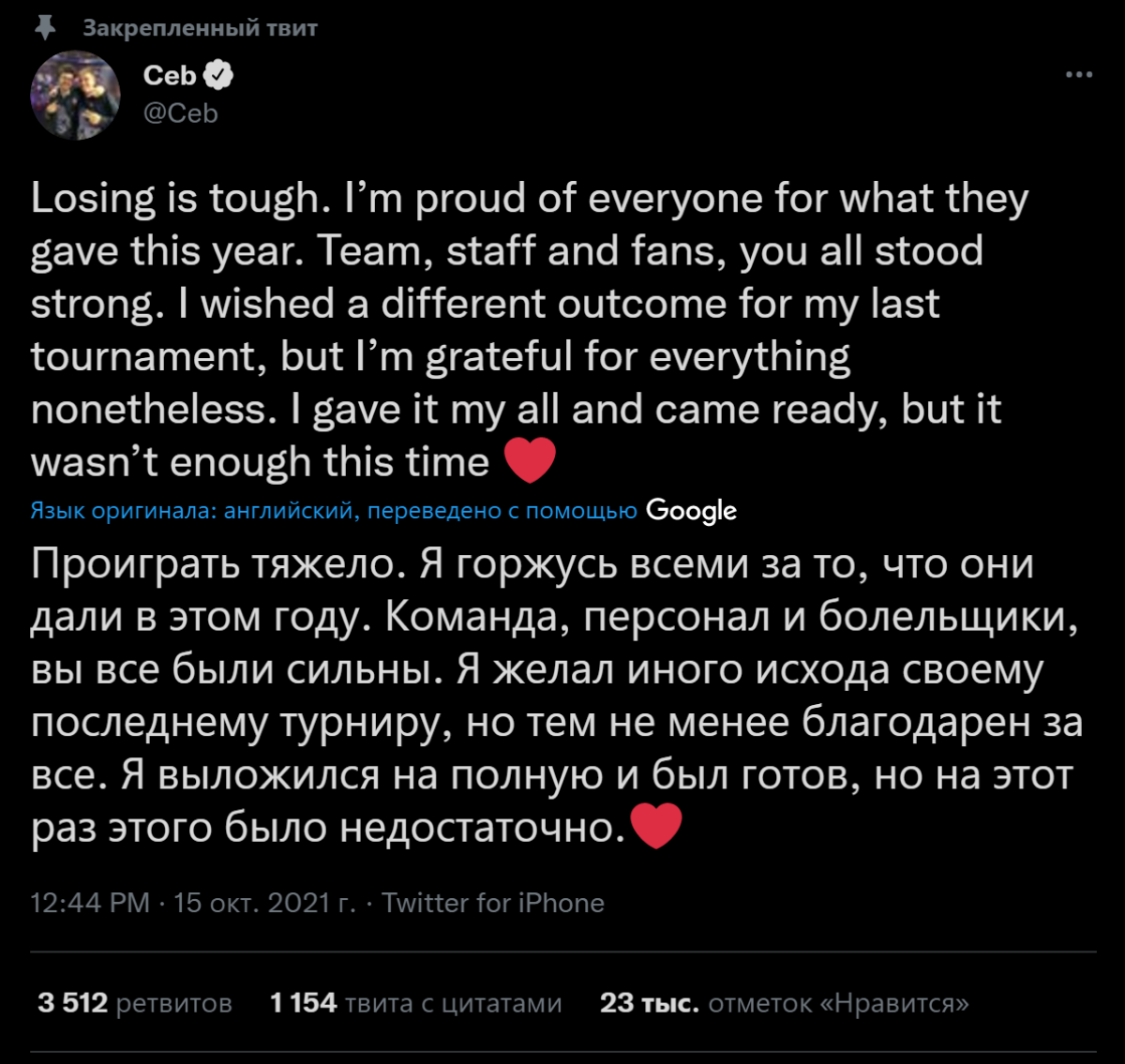 По-настоящему важными стали первый и третий матч сегодняшнего дня, именно они определили судьбу российских команд на этом турнире. Сначала Team Spirit сошлись с двукратными чемпионами The International — OG. Как мы заметили вчера, у наших ребят действительно были большие шансы на победу, и они эту возможность не упустили. Благодаря уверенному и безошибочному исполнению изначальной стратегии на матч, а также феноменальной игре оффлейнера Магомеда Collapse Халилова, Team Spirit одержала победу над OG со счетом 2:0. Эта победа стала первой настоящей сенсацией турнира. После поражения капитан команды OG Себастиан Ceb Дебс заявил об окончании карьеры игрока. T1 и OG закончили свое выступление, заняв 7-8 места.