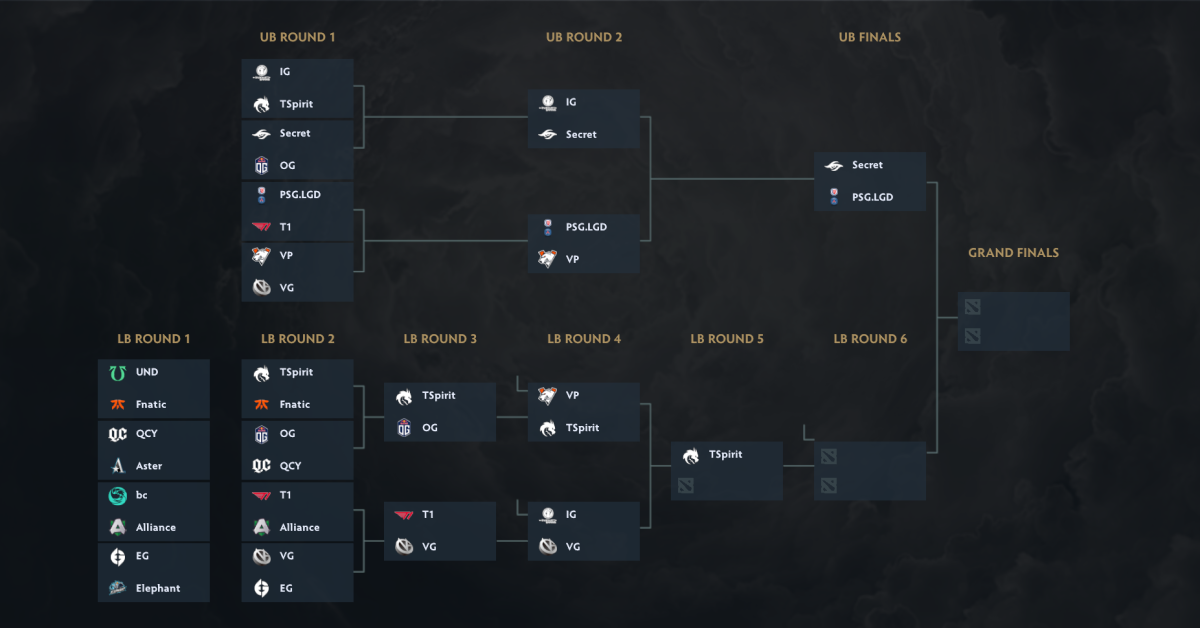 - В 13:00 начнется один из важнейшей матчей турнира, финал верхней сетки, Team Secret против PSG.LGD. Победитель этой игры станет первым финалистом The International и сразится в гранд-финале с победителем финала нижней сетки. Именно туда упадет проигравшая команда, и будет вынуждена играть дополнительные матчи. Противостояние Secret и PSG.LGD олицетворяет главный конфликт всего турнира — китайской Dota 2 сцены и всего остального мира.
