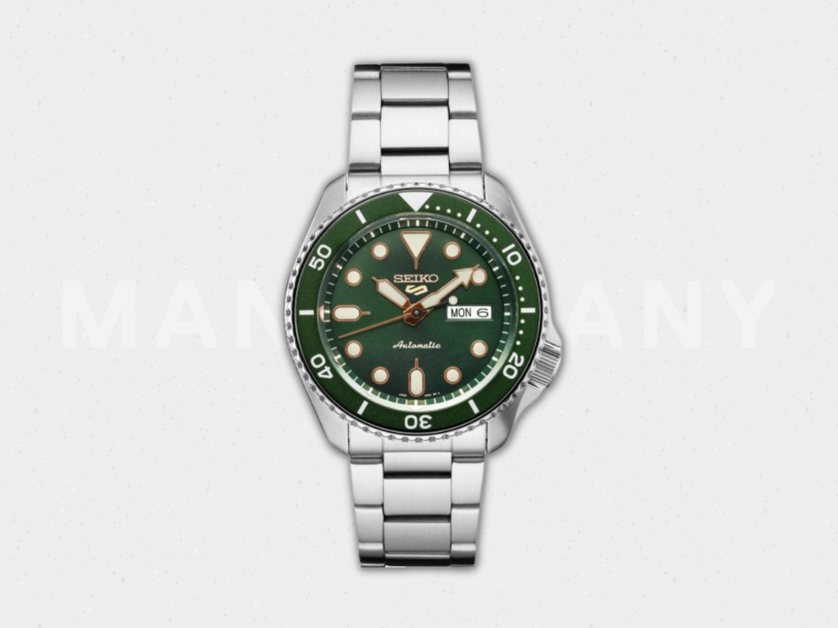 Мечтаете о часах, похожих на Rolex? Тогда обязательно обратите внимание на Seiko 5 и его потрясающий однонаправленный безель в стиле дайверов, который окружает привлекательный циферблат. Нам нравится сочетание зелёного циферблата с кремовыми индексами и светящимися стрелками и маркерами, которые обеспечивают видимость при слабом освещении. Внутри находится автоматический механизм с 23 драгоценными камнями. Стекло Hardlex защищает от царапин, а завинчивающаяся задняя крышка с окошком для демонстрации часов сохраняет их в целости и сохранности. Надежный браслет с застежкой из нержавеющей стали завершает картину. Не зря Seiko 5 является первой моделью, которую выбирают большинство любителей часов, это одни из самых выгодных часов по соотношению цены и качества.