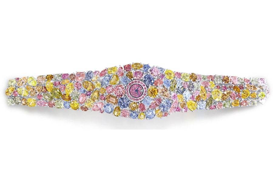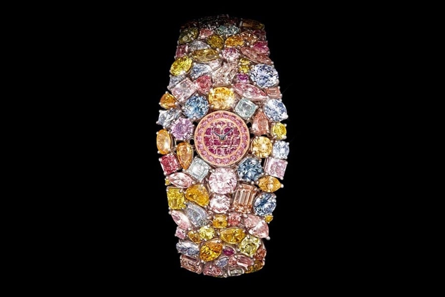 В соответствии со своим названием, Graff Diamonds Hallucination выглядят как нечто из самых безумных фантазий коллекционеров. Это не просто самые дорогие часы из когда-либо созданных, это сверкающее сочетание цветных бриллиантов (общей массой более 110 карат) — настоящее великолепие, настолько, что вы пугаетесь, просто глядя на его фотографии. В комплект также входит платиновый браслет на случай, если владелец осмелится его примерить. Будь то часы, которые носят на запястье или выставляют за стеклом, Hallucination доводит высокую часовую культуру до предела роскоши и тем самым становится самыми дорогими часами в мире.