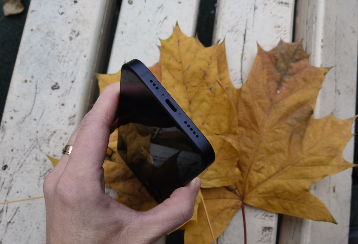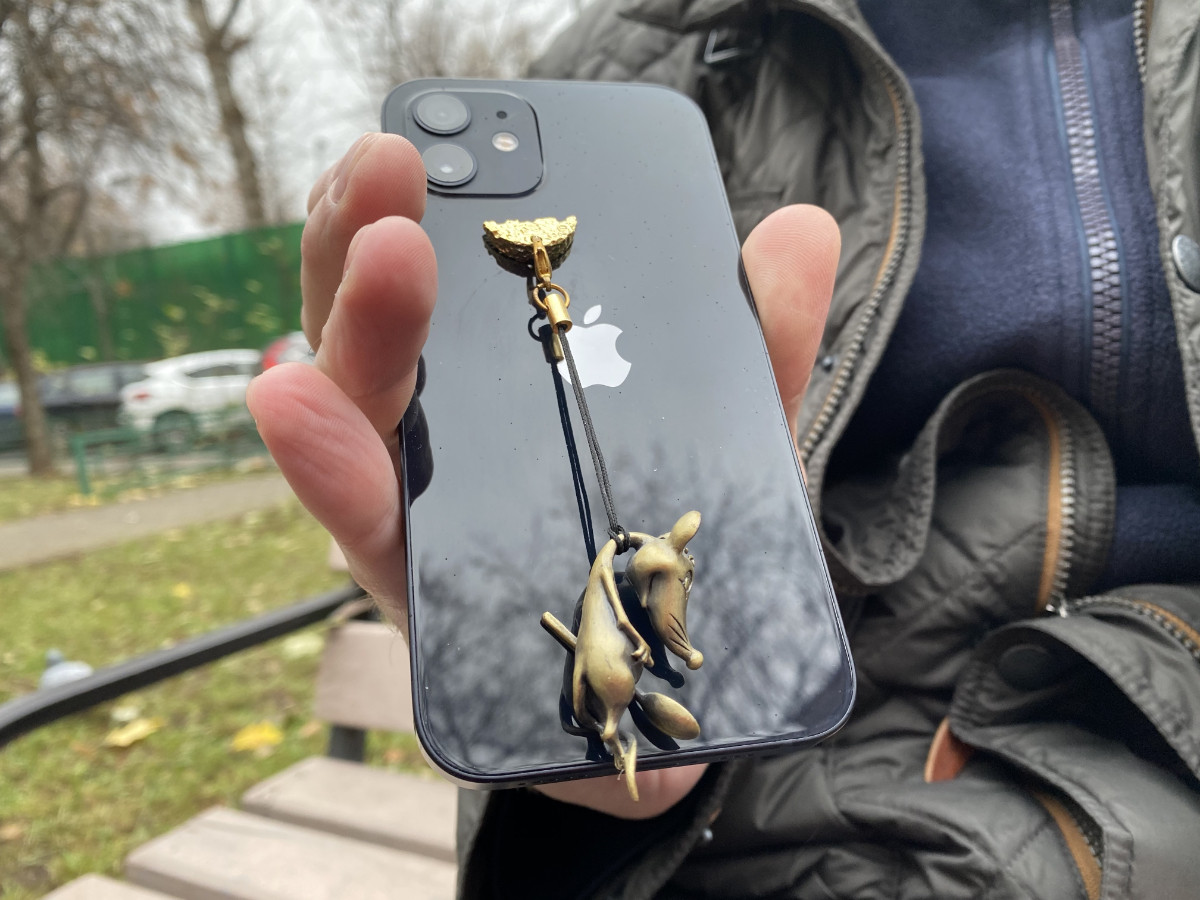Зато пачкается. У меня на тесте был черный iPhone 12 — не берите этот цвет, если планируете носить смартфон без чехла.