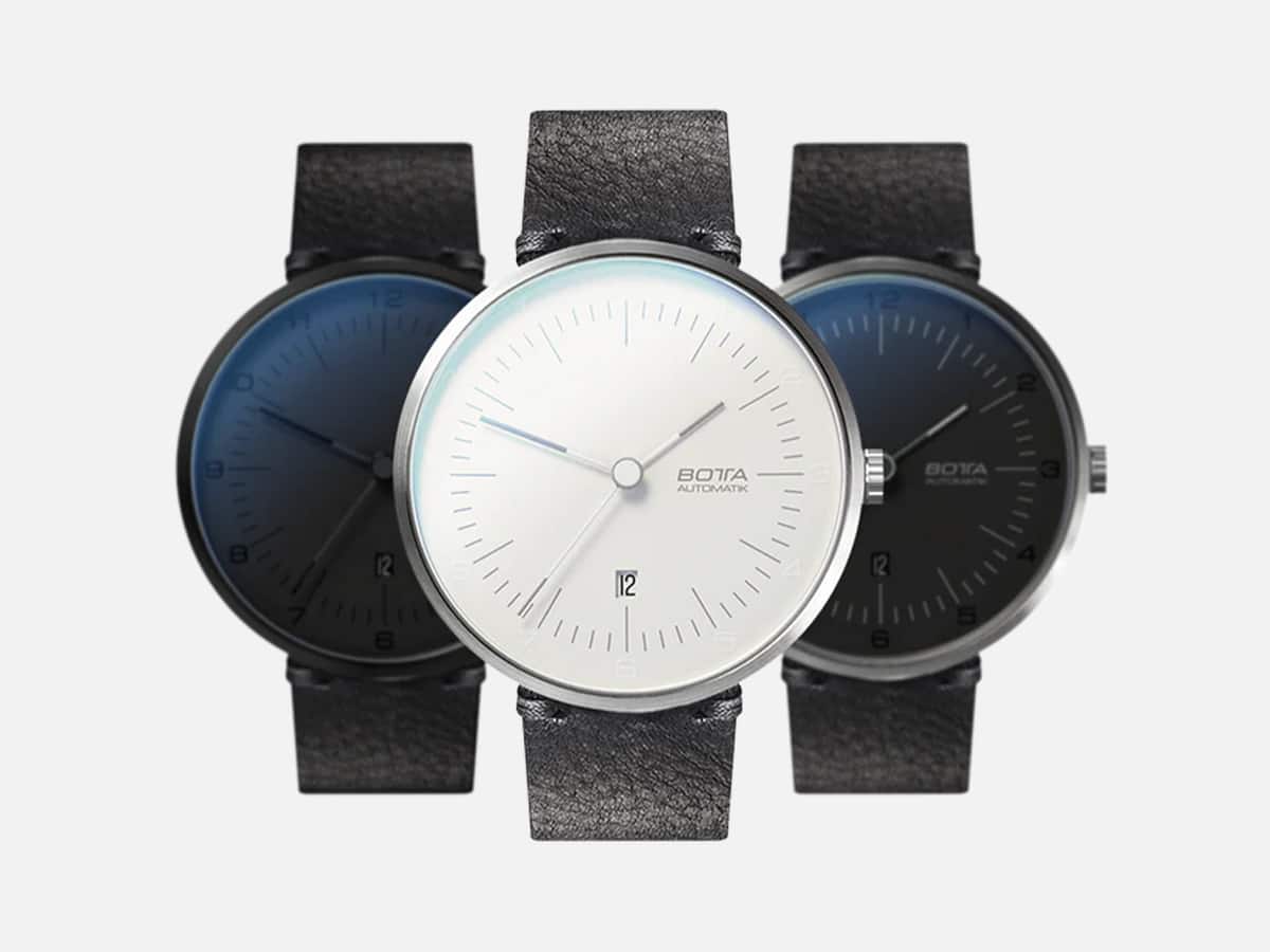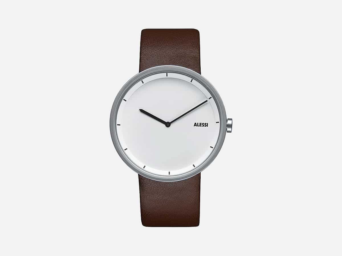 Эти часы в современном дизайне подойдут для любого случая. Циферблат доступен в чёрном или белом цвете, а варианты ремешка включают коричневый или чёрный кожаный ремешок, металлический или каучуковый.