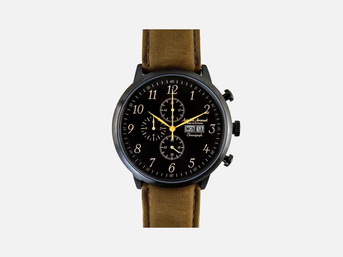 Бренд может называться About Vintage, но в этих часах нет ничего винтажного. Благодаря чистому, но современному классическому дизайну эти часы можно с лёгкостью носить как в офисе, так и в пабе. На корпусе каждого экземпляра выгравирован уникальный номер. Часы имеют корпус диаметром 41 мм и кварцевый механизм Miyota 6s11 с хронографом.