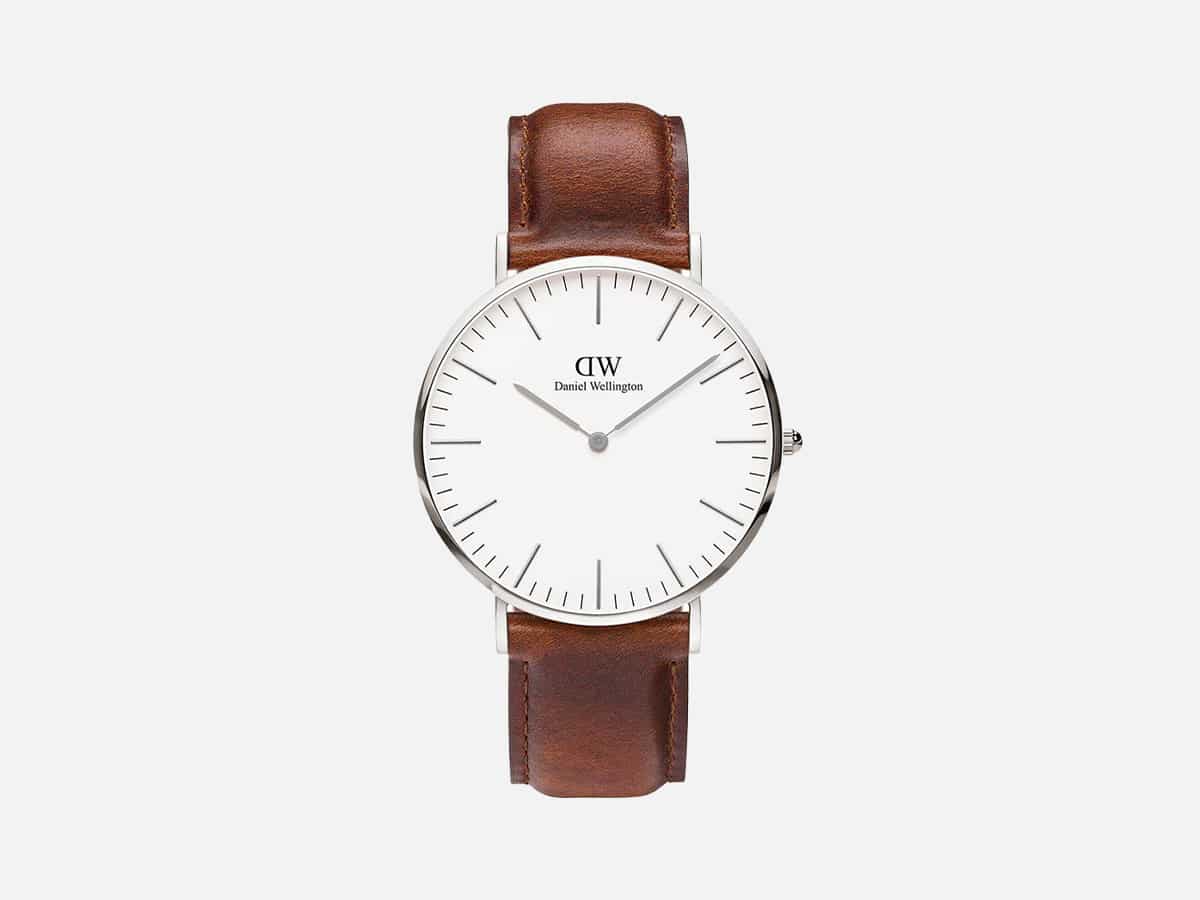 Daniel Wellington ассоциируется с минималистичным дизайном, а циферблат Bristol цвета яичной скорлупы в корпусе из розового золота или серебра выглядит элегантно. Ремешок тёмно-коричневого цвета сделан из кожи.