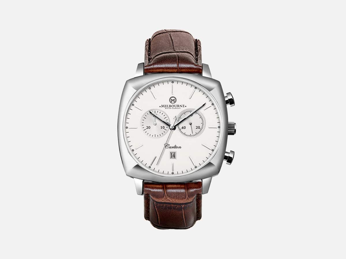 Австралийская часовая индустрия развивается с каждым днём, но компания Melbourne Watch Co была одной из первых на этом рынке, и её коллекции элегантных часов нравятся многим. Коллекция Carlton квадратной формы оснащена механизмом хронографа Seiko и является отличным универсальным вариантом для ношения в зале заседаний или на выходных. Ретро-стиль сочетается с современными элементами, и одна из наших любимых особенностей — это выгравированный на корпусе рельеф Королевского выставочного здания Мельбурна, Карлтона, исторической достопримечательности штата Виктория, в честь которой названы часы.