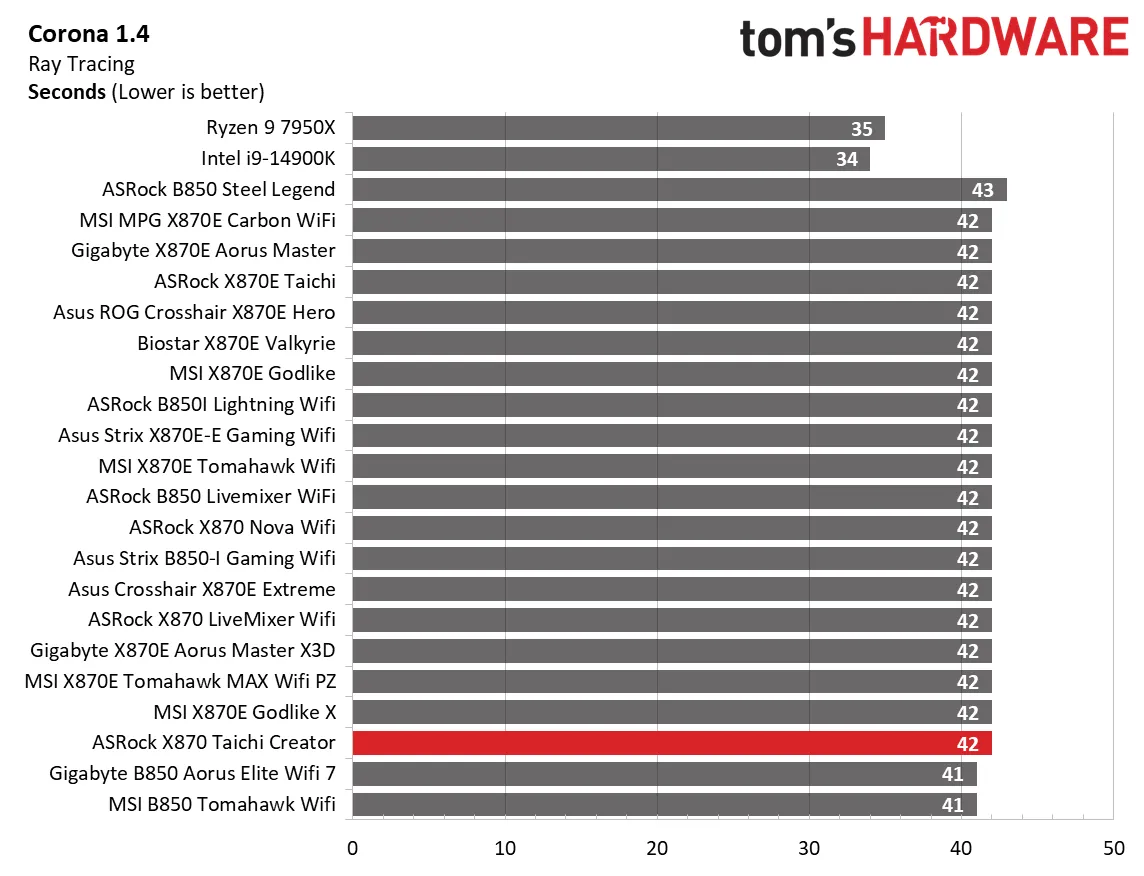 Существует пара конкурирующих материнских плат для «креаторов», например, Asus ProArt X870E-Creator Wi-Fi (около 42 тыс. руб.), но она намного дороже и, честно говоря, предлагает ненамного больше, чем Taichi Creator.