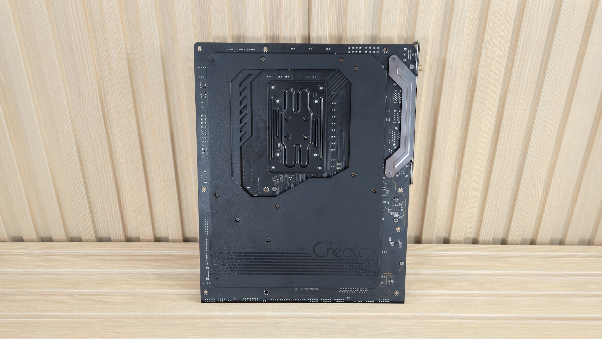 Плексигласовые накладки с логотипом Creator установлены поверх чипсета и левой части радиатора VRM, создавая уникальный визуальный стиль. Если вам нужна RGB-подсветка, придется подключиться к одному из многочисленных разъемов платы, поскольку встроенных светодиодов здесь нет.