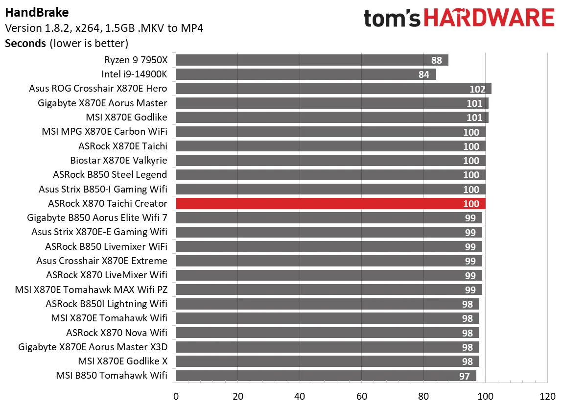 Синтетические тесты — отличный способ оценить базовую производительность материнской платы, поскольку при идентичных настройках результаты должны быть схожими. Однако производители плат могут оптимизировать работу, уделяя внимание таким параметрам, как энергопотребление в режиме Turbo Boost и вторичные тайминги памяти, что может повлиять на результаты в конкретных сценариях.