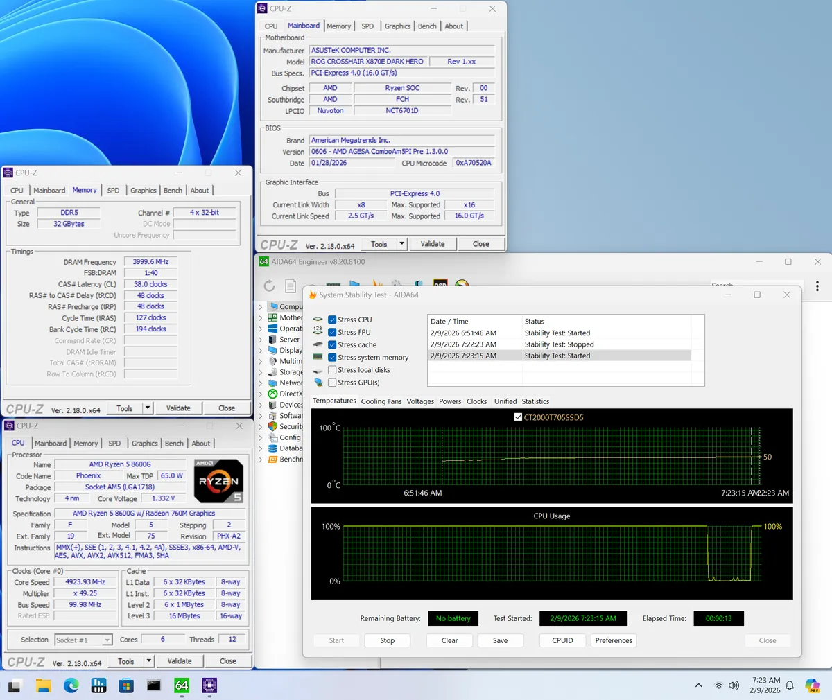 Для теста памяти мы начали с нашего самого быстрого комплекта — Klevv 32 ГБ DDR5-8000. Как это обычно и бывает на платформе AMD, система загрузилась в Windows, но стресс-тест с нашим процессором 9900X не прошла. А вот комплект от Team Group на DDR5-7200 заработал без малейших проблем. Эти частоты значительно превышают «золотую середину» для платформы AMD, и, учитывая нынешние цены на память, я сомневаюсь, что многие будут гнаться за такими высокими скоростями.