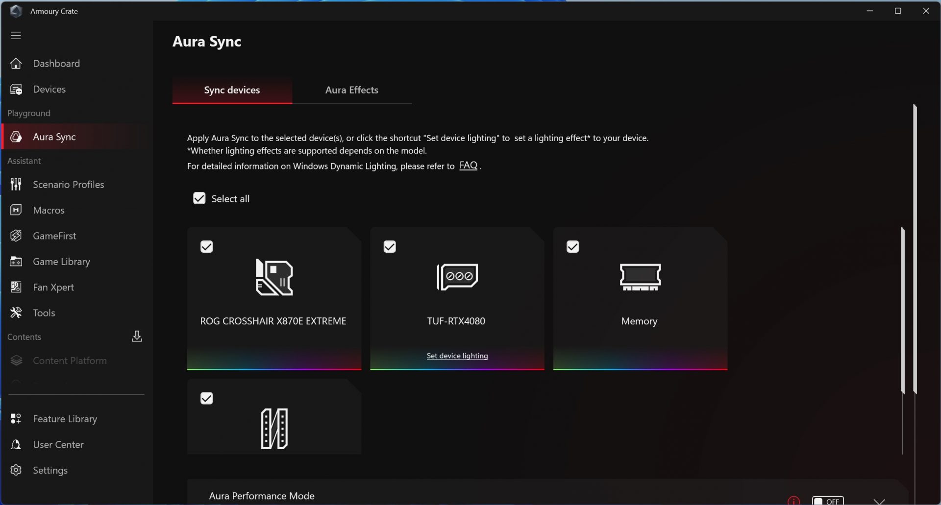 Приложение Armoury Crate также выполнено в фирменном стиле ROG. Внутри него собрано несколько утилит для самых разных задач, от управления RGB-подсветкой и звуком до системного мониторинга и разгона. Отдельно стоит упомянуть софт, идущий в комплекте. Покупая эту плату, вы получаете годовую лицензию на AIDA64 — шикарное приложение для стресс-тестов и бенчмарков; Asus Driver Hub (именно здесь я советую обновлять драйверы!); технологию Dolby Atmos для объёмного звука; и кастомную версию утилиты Hwinfo для мониторинга в реальном времени. Все они — крайне полезные инструменты. Ниже я приложила несколько скриншотов, чтобы вы могли оценить интерфейс.