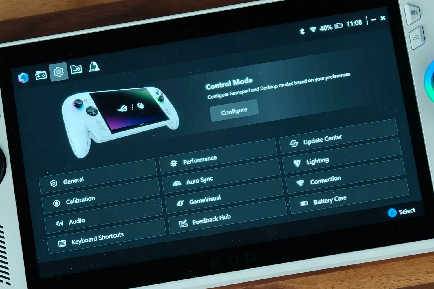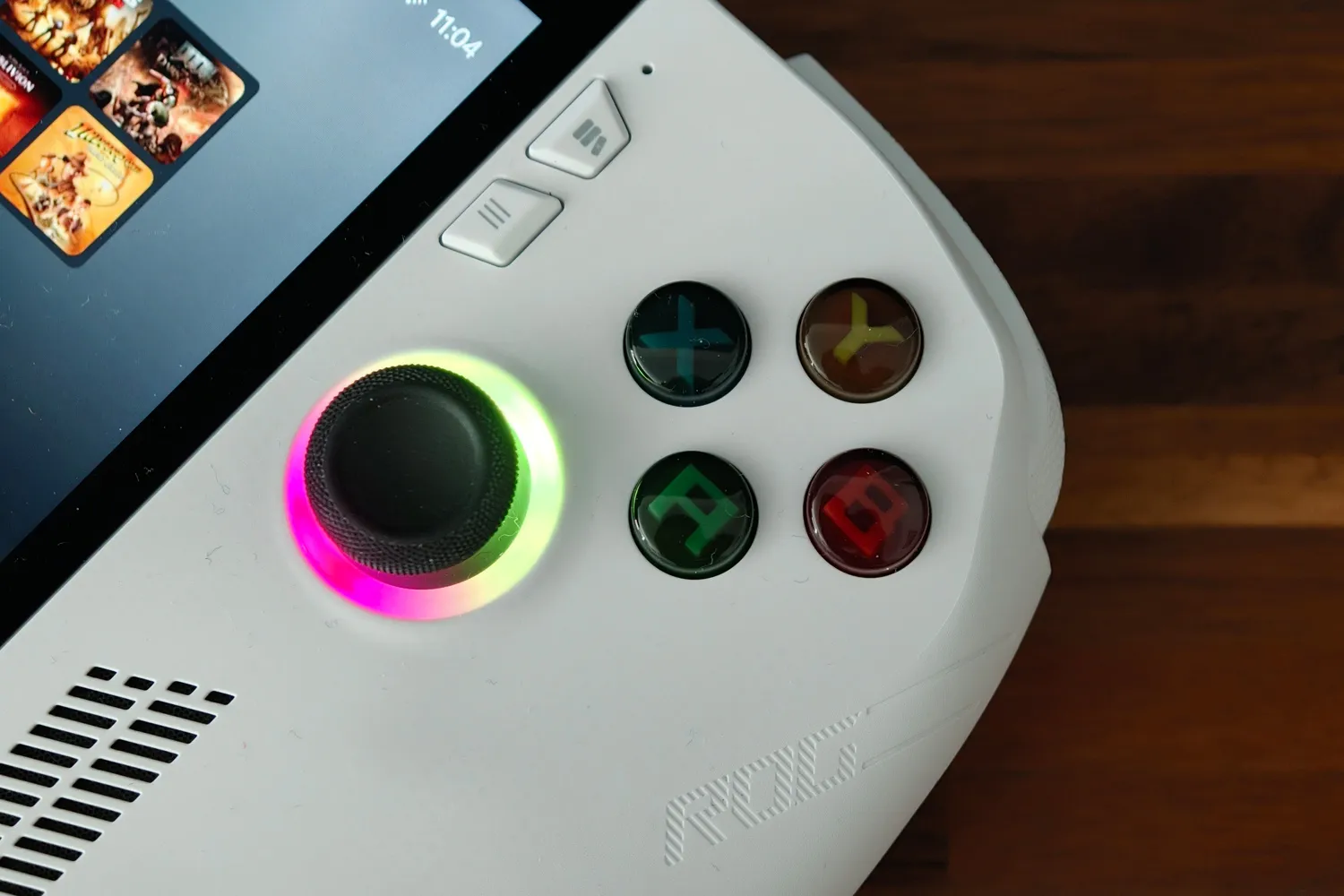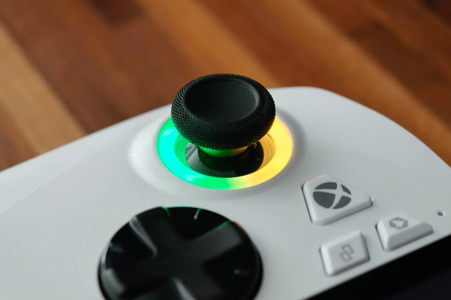 Помимо рукояток, единственное дополнение в стиле Xbox — это специальная кнопка Xbox рядом с кнопками быстрого доступа. Она действительно удобна для возврата в обновленное приложение Xbox из игр. Все остальное следует примеру ROG Ally X от Asus в плане расположения элементов. Это и асимметричное расположение аналоговых стиков с LED-подсветкой, которая может быть любого цвета, а не только зеленого в стиле Xbox.