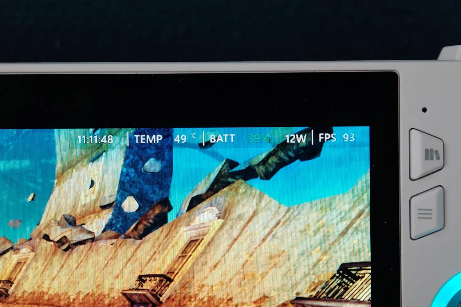 Кроме того, несмотря на формальное превосходство в частоте обновления (120 Гц) и поддержку AMD FreeSync Premium, базовая панель имеет более медленное время отклика, чем OLED-экран Deck. На мой взгляд, разница едва заметна, когда Ally способна выдавать максимальную частоту кадров. Но я все равно рад, что эта функция здесь есть, так как она помогает сохранять плавность в более требовательных играх при падении FPS.