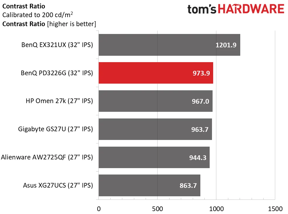 Хотя мне бы хотелось видеть коэффициент контрастности на уровне 1200:1 или 1300:1, PD3226G выжимает максимум из своих возможностей именно благодаря исключительно точному отслеживанию гаммы.