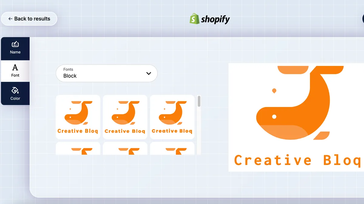 Ранее известный как Hatchful, собственный конструктор логотипов Shopify отлично подходит для тех, кто хочет быстро создать цифровую витрину — плюс, вы получаете бесплатный PNG высокого разрешения с прозрачным фоном! Это настоящая победа.