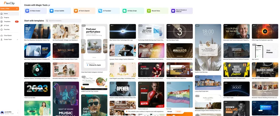 Удобство использования: благодаря понятному интерфейсу и четко обозначенным разделам в FlexClip легко ориентироваться и пользоваться. Все, что вам нужно, находится на одной странице, что упрощает процесс редактирования и идеально подходит для новичков или энтузиастов.