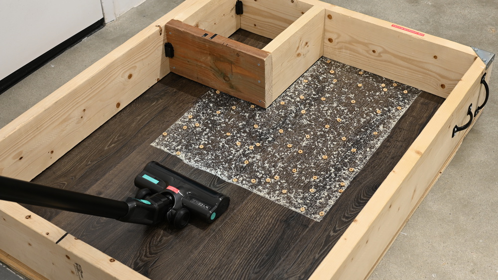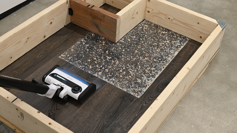В отличие от пушистого валика Shark, Wyze использует более традиционный многоповерхностный щеточный валик с щетиной. К счастью, щетина недостаточно жесткая, чтобы поцарапать ваши деревянные полы, и при этом обеспечивает определенную степень воздействия на любых ковриках, которые могут быть у вас в гостиной.