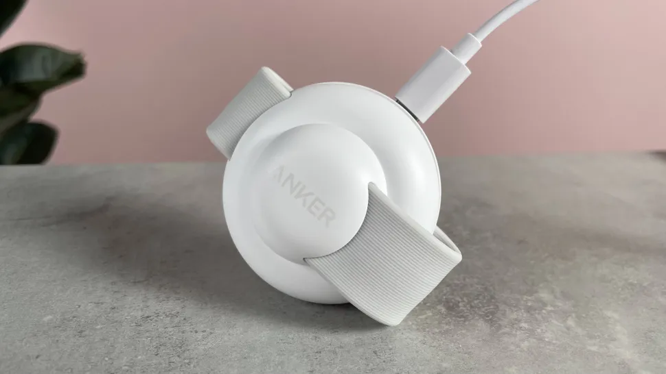 Эта складная зарядная панель впечатляет своей компактностью и лёгкостью для зарядного устройства «3 в 1». Она имеет необычный дизайн, напоминающий что-то среднее между макароном и летающей тарелкой, что добавляет немного новизны, но при этом позволяет легко положить её в карман. Тема макарона особенно заметна, если вы выберете один из милых пастельных цветов вместо чёрного или белого; мне было немного грустно, что у меня не было розового цвета для тестирования, но белая модель тоже достаточно привлекательна. Текстура матовой поверхности приятная и мягкая, несмотря на то, что она сделана из твёрдого пластика, а силиконовые ремешки выглядят качественно и позволяют легко сложить зарядное устройство. Я рад сообщить, что компания Anker позаботилась об экологичности этого запатентованного дизайна, поскольку внешний корпус, как утверждается, изготовлен из пластика, на 75% состоящего из переработанных материалов.