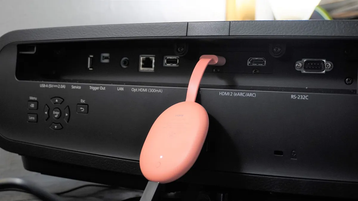 Для проекторов, где это не так, у вас обычно есть три варианта: вы можете подключить устройство, такое как ноутбук или Apple TV, через разъем HDMI, запустить на нем стриминговое приложение и отправить видео на проектор; вы можете вставить стриминговый стик, такой как Amazon Fire TV Stick, в порт HDMI и использовать его как источник видео; или вы можете транслировать без проводов с устройства, такого как ноутбук, Chromebook, телефон или планшет.