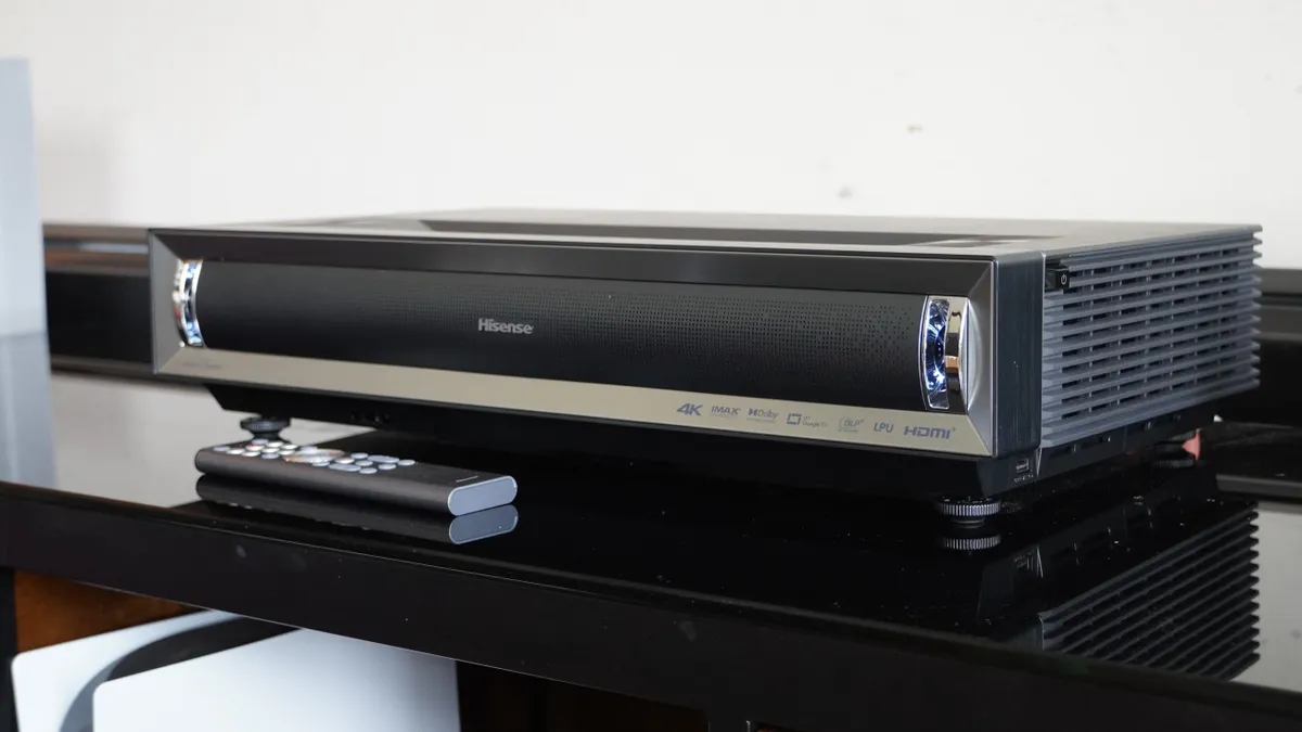 Ультракороткофокусный 4К-проектор Hisense PX3-Pro, предназначенный для проецирования больших изображений на стену или экран с расстояния в несколько сантиметров, сочетает высокую яркость с насыщенными цветами и может транслировать контент из приложений напрямую через интерфейс Google TV.