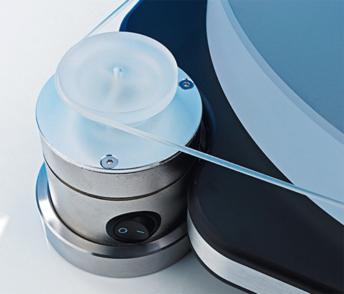 На подшипнике располагается акриловый блин толщиной 40 мм; ему не требуется мат, поскольку по физическим характеристикам акрил близок к винилу – таким образом, резонансные колебания, возникающие внутри пластинки, передаются на слой акрила и там гасятся. Картриджу не приходится бороться с излишними колебаниями, и ему остается только снимать информацию с дорожек диска. Отделенный от рабочей части двигатель вращает диск посредством ступенчатого шкива и круглого пассика. Скорости переключаются вручную – перемещением пассика на другую ступень шкива. Это несложно, однако большинство равноценных конкурентов имеют электронный переключатель скоростей. На кожухе двигателя расположена также кнопка включения. С инженерной точки зрения развязать двигатель с основным блоком очень полезно: в таком режиме тому передается меньше вибраций, и картриджу проще снимать сигнал с винила.