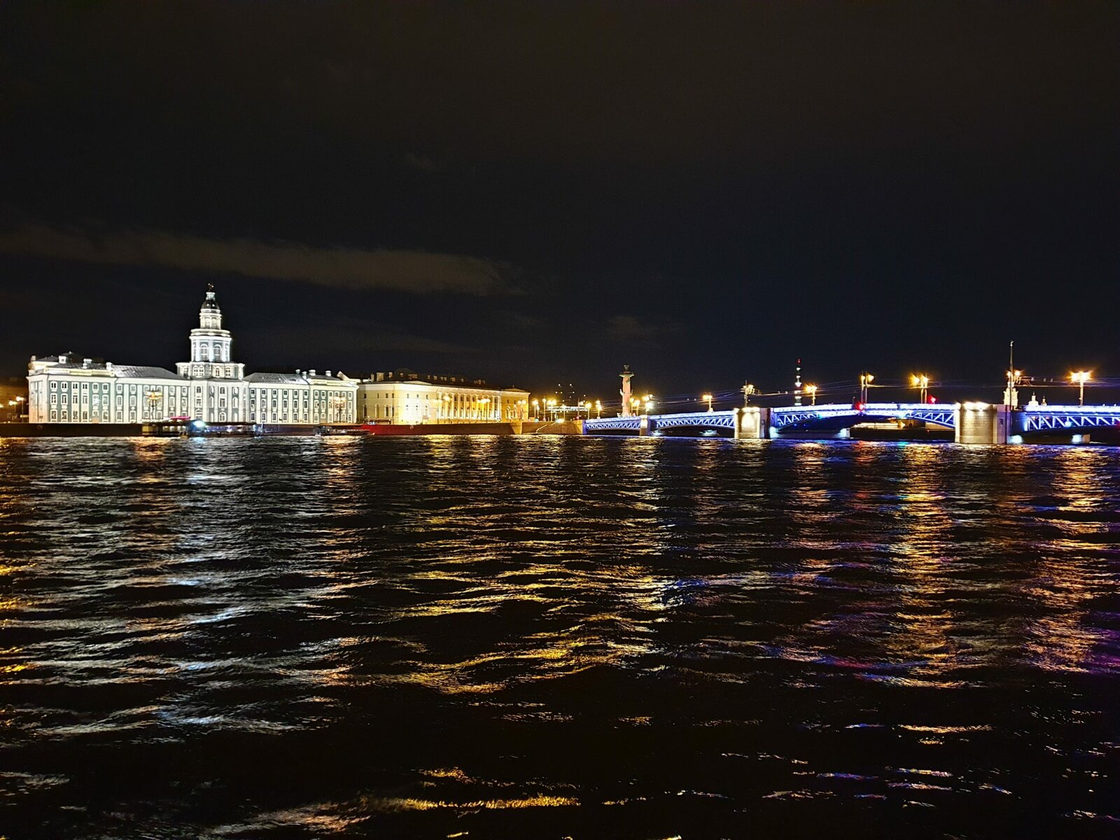 Второй раунд – ночная съемка разведения мостов: в кадр попадает и вода, и сам мост, и здания напротив, а задача смартфона — правильно передать детали с минимальным уровнем «шума».