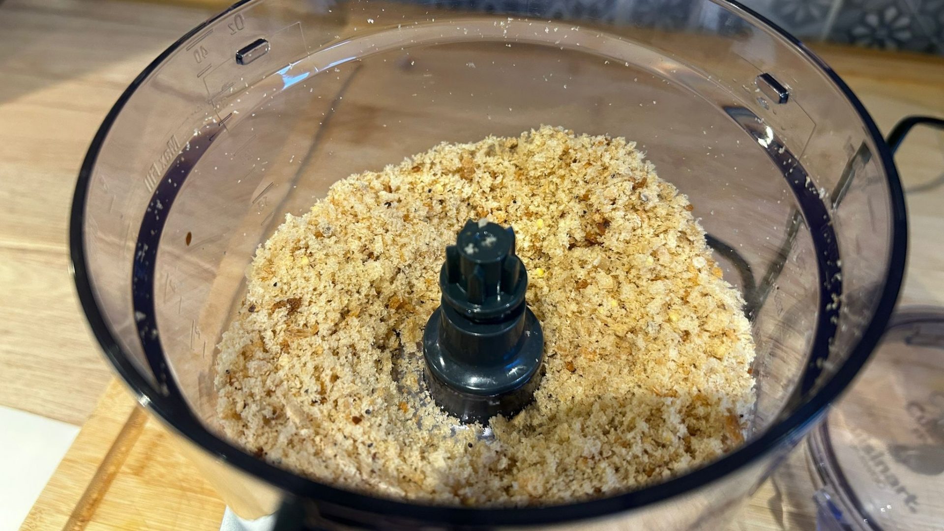 Измельчение хлеба этим ножом также дало отличные результаты. Как и предлагалось в инструкции, мы разорвали три ломтика мультизернового хлеба на кусочки, затем использовали «Pulse» (буквально на одну секунду) три или четыре раза, после чего включили постоянный режим. Потребовалось от 5 до 10 секунд, чтобы получить равномерные хлебные крошки, и под лезвием ничего не застряло.