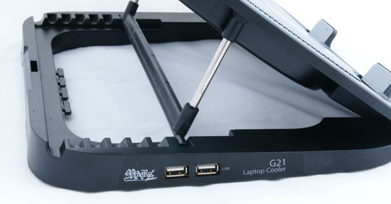 Питание встроенного вентилятора здесь, как и у G21T, обеспечивается через USB-подключение. При этом подставка может иметь два или четыре таких порта (в зависимости от цифры в названии модели), выполняя роль USB-разветвителя.