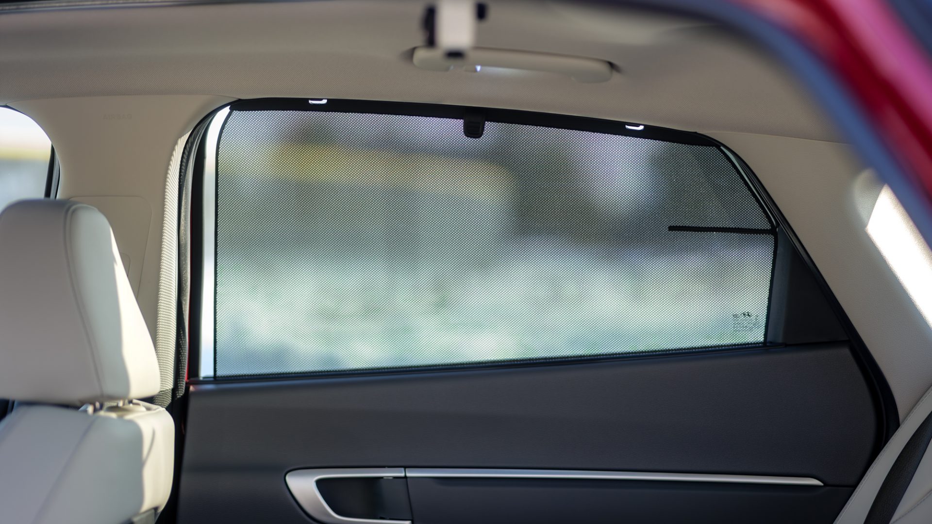 Пассажиры на заднем диване могут спрятаться от палящего солнца (или от любопытных взглядов в пробке) с помощью ручных солнцезащитных шторок. Да, они вытягиваются руками, а не выезжают по нажатию кнопки, как в каком-нибудь Genesis GV80, но свою функцию по защите от бликов они выполняют на все сто. И это еще одна типично люксовая фишка, которую Hyundai умудрились запихнуть в этот седан.