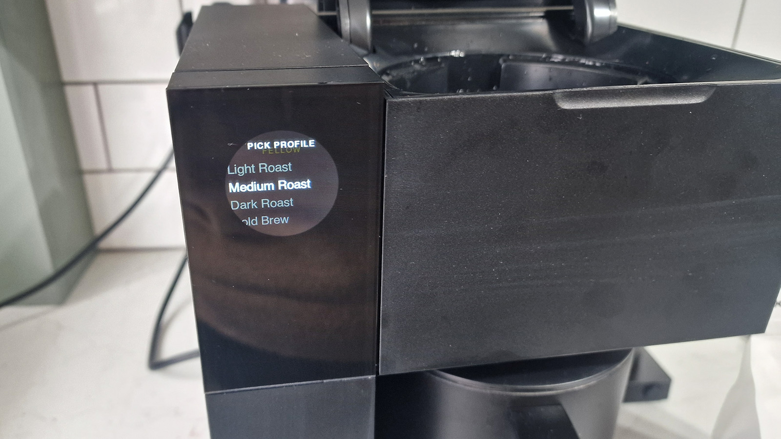 Управление кофеваркой осуществляется с помощью круглого ЖК-дисплея и поворотной кнопки, которая приятно щелкает при выборе настроек заваривания. Вы можете выбрать мгновенное заваривание, при котором используется вся вода из резервуара без каких-либо подсказок, или получить индивидуальные рекомендации для разных уровней обжарки кофе.