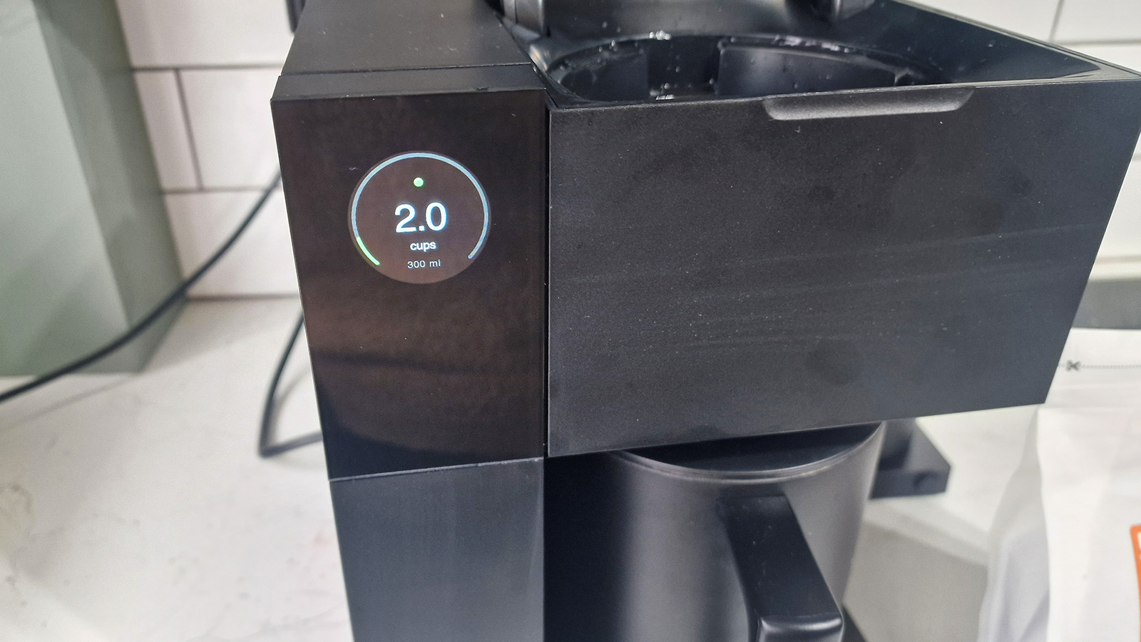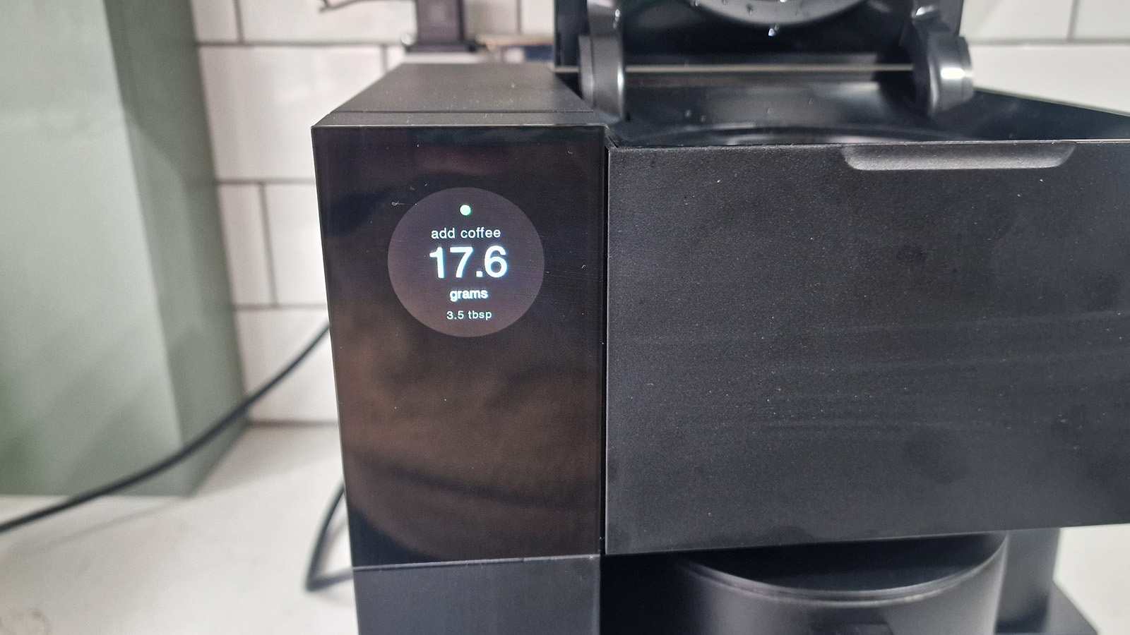 Эта машина подбирает рекомендации по завариванию в зависимости от обжарки вашего кофе. Когда я экспериментировала с новой арабикой светлой обжарки, я смогла указать машине, что хочу заварить 2 чашки, и она подсказала необходимый вес молотого кофе (с точностью до 0,1 грамма) и подобрала температуру заваривания для оптимизации вкуса. Это сработало невероятно хорошо и избавило от множества догадок в процессе получения хорошего напитка, приготовленного методом pour-over. Все, что мне нужно было сделать, — это взвесить зерна, смолоть их, засыпать в корзину с фильтром, нажать «старт» и наблюдать, как машина мгновенно начинает процесс заваривания.