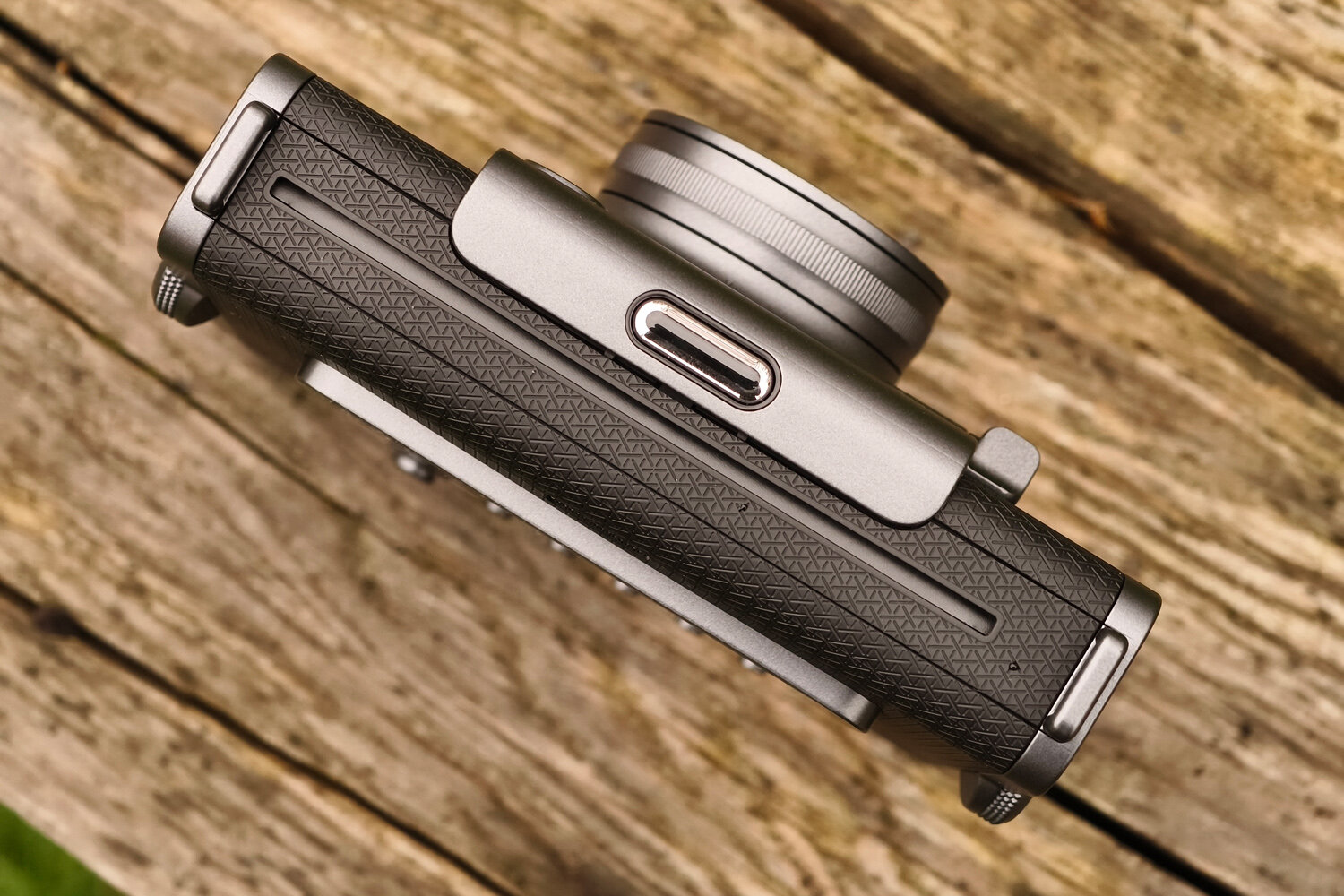 Корпус Fujifilm Instax Wide Evo сделан из пластика, сочетающего серый «оружейный металл» и текстурированный черный цвет, что напоминает профессиональные цифровые камеры Fuji GFX. Она тяжелее, чем кажется на вид, что придает ей солидности. Резьба для штатива на нижней грани — разумное дополнение для камеры, хорошо подходящей для пейзажной съемки.