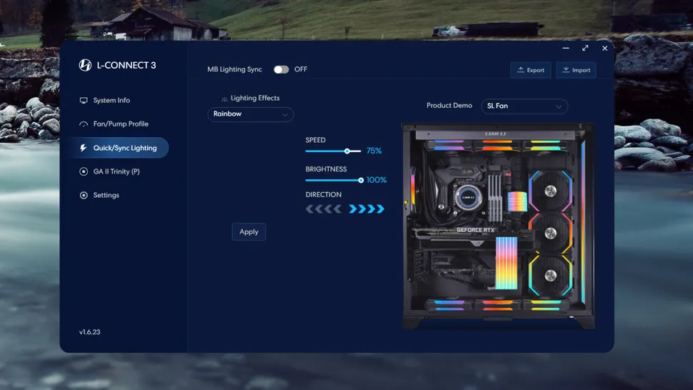 С материнской платой Lian Li Galahad II Trinity Performance у вас есть выбор. При желании вы можете использовать стандартные элементы управления материнской платой, но компания также предлагает загрузить дополнительное программное обеспечение L-Connect3 для более индивидуальной настройки.