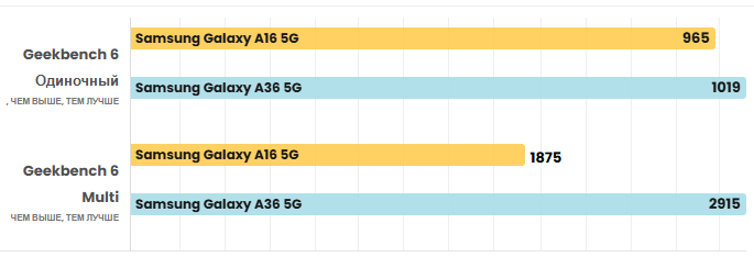 Что действительно неудивительно, Galaxy A36 побеждает как в синтетических тестах процессора, так и в тестах графического процессора. Извини, Galaxy A16, такова игра.