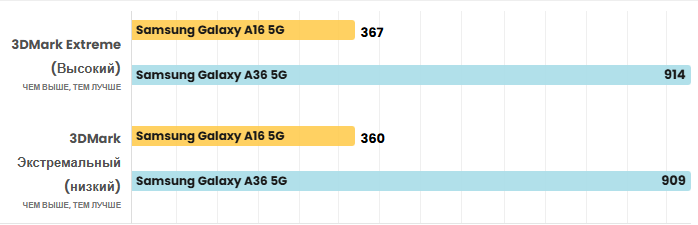 Однако с точки зрения производительности графики это просто катастрофа для сверхдоступного Galaxy A16 — он просто не предназначен для игр. Galaxy A36 тоже не является особенно мощной игровой машиной, но в играх он работает значительно лучше.