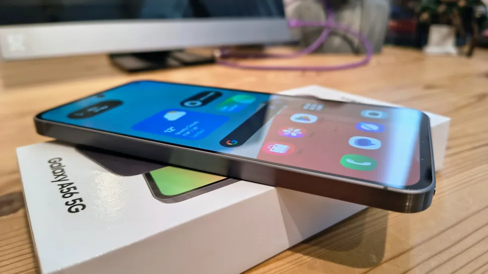 A56 — это беззастенчивая дань уважения iPhone, где металлическая рамка опоясывает снаружи сэндвич из стекла и электроники.